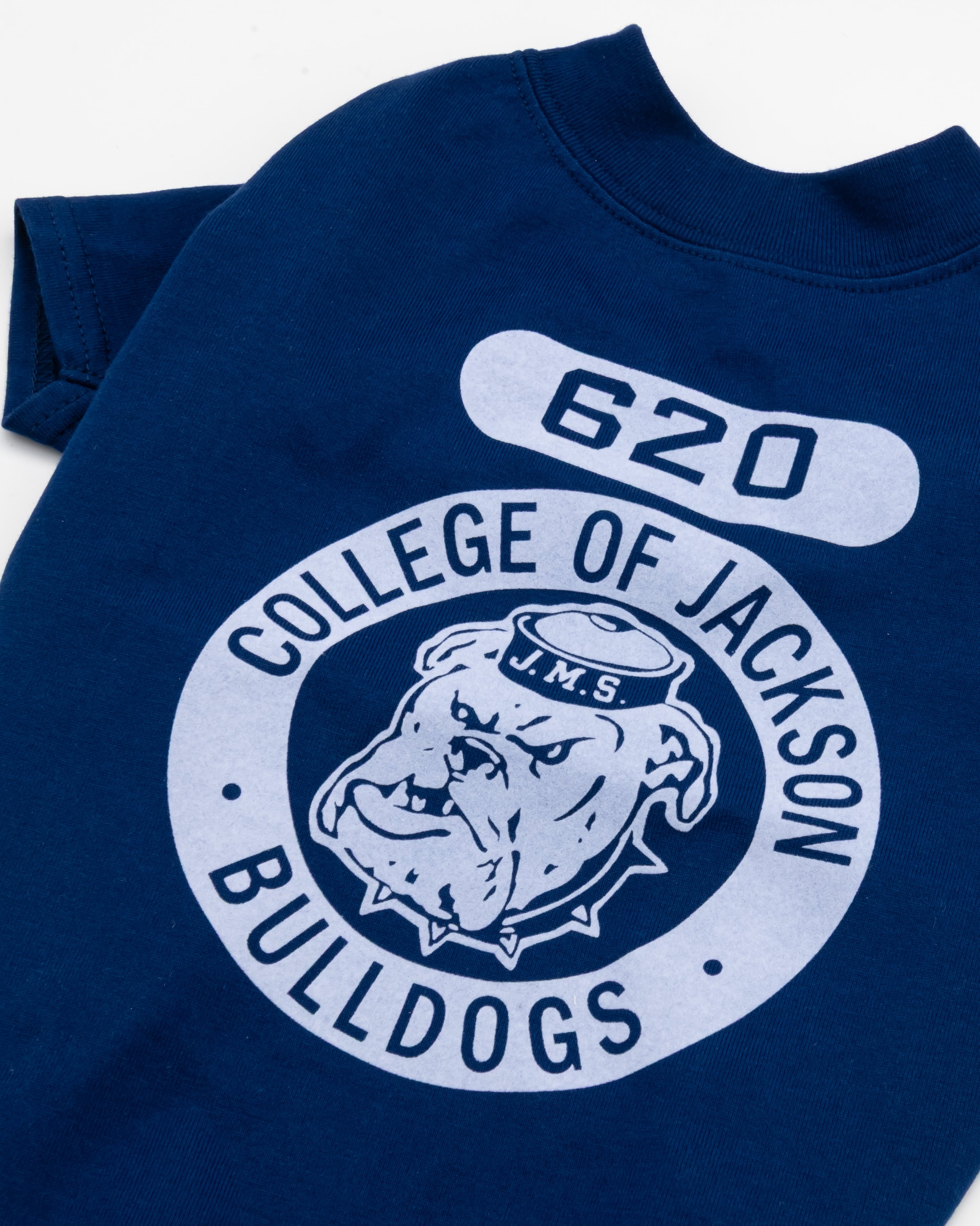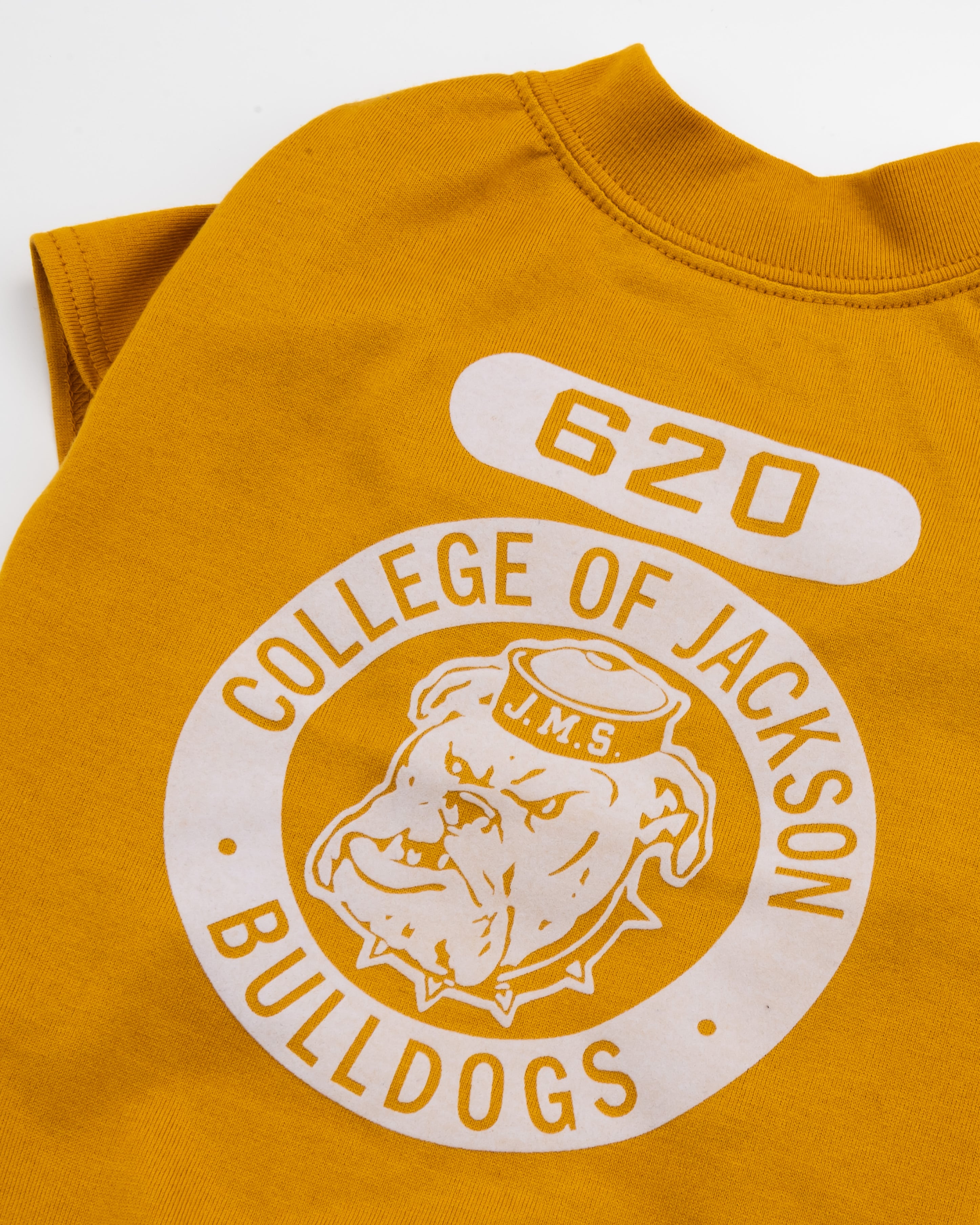 古着のようなグラフィック+フロッキープリントがポイントのTシャツ。
